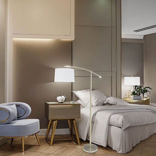 Standing Arc Floor Lighting Hotel Lamp Bedroom Adjustable Metal Modern Iron White Round Large Incandescent Bulbs E26 XB-FL134-BN
