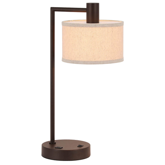 Table Lamp with USB Port, Fabric Drum Shade, Dark Bronze Finish, On/Off Switch XB-TL1230-DB