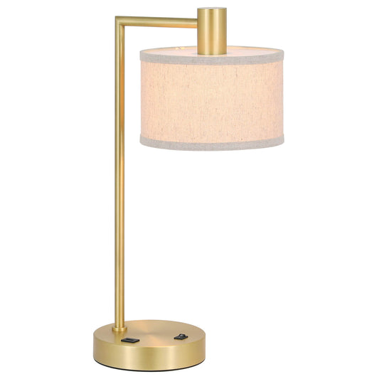 Table Lamp with USB Port, Fabric Shade, Satin Brass, Bedside Desk Lamp for Bedroom XB-TL1230-SB