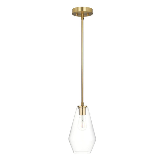 Glass Pendant Light, Brushed Brass, Clear Glass Shade, Kitchen Island Hanging Fixture XB-P1228-BS