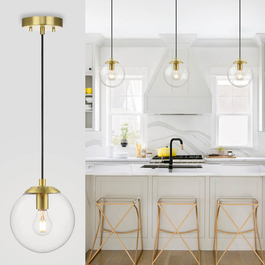 Globe Pendant Light, Modern Brass Kitchen Island Pendant Lighting with Clear Glass XB-P1259-SB