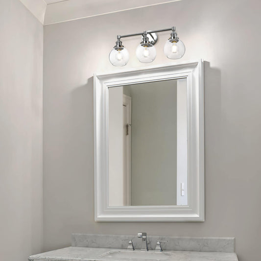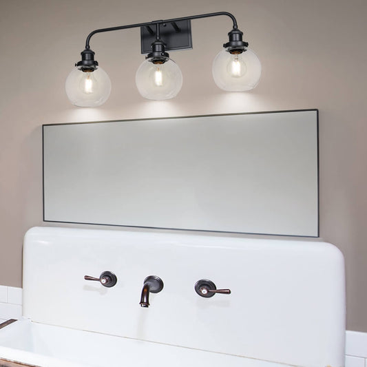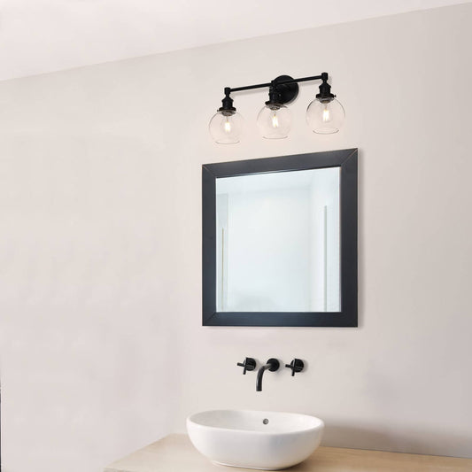 Bathroom Vanity Light Fixture, 3-Light, Black Metal with Clear Glass Globe Shades XB-W1256-3-MB