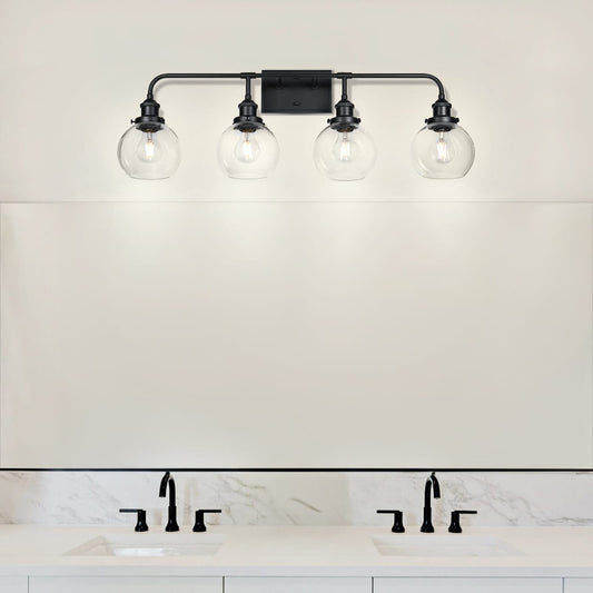 Modern 4-Light Black Globe Vanity Light for Bathroom & Kitchen XB-W1275-4-MB