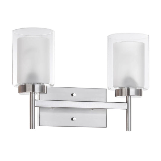 Modern 2-Light Brushed Nickel Bathroom Sconce with Dual Glass XB-W1276-2-BN