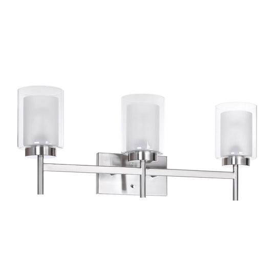Modern 3-Light Brushed Nickel Vanity Light with Dual Glass XB-W1276-3-BN