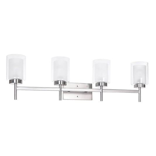 4-Light Modern Brushed Nickel Vanity Light with Dual Glass Shades XB-W1276-4-BN