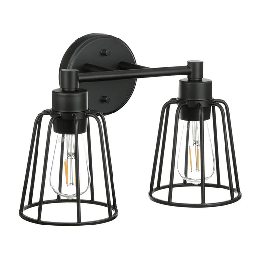 Black 2-Light Farmhouse Cage Vanity Wall Lighting XB-W1287-2-MB