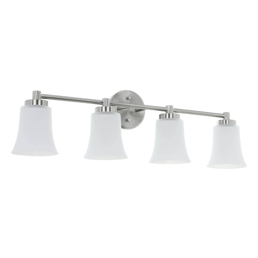 4-Light Bathroom Vanity Light Fixture, Brushed Nickel, Milk Glass Bell Shades XB-W1235-4-BN