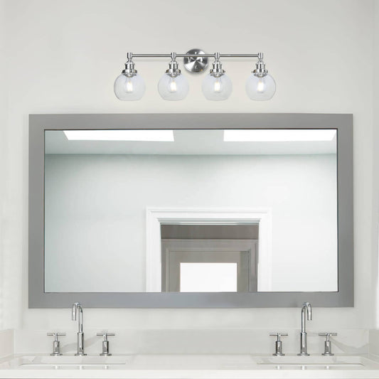 Bathroom Vanity Light Fixture, 4-Light, Brushed Nickel with Glass Globe Shades XB-W1256-4-BN
