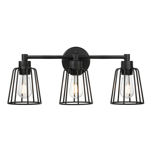 Black Farmhouse Cage Vanity Light XB-W1287-3-MB