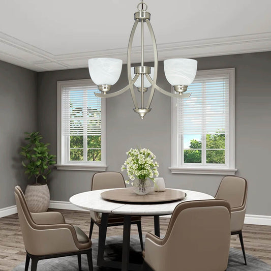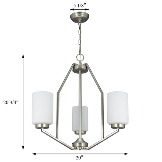 Modern Hotel Vintage Glass Shade Brushed Nickel 3 Light Hanging Ceiling Light Fixture Large Chandelier Pendant Light XB-C721-3-SN