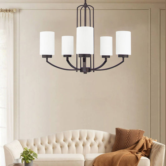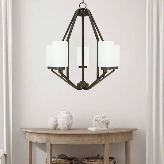 Indoor Decorative Iron Dark Bronze E26 Chain Hanging Ceiling Lamps Chandelier Ceiling Light Glass Pendants Lights for Home XB-C816-5-DB