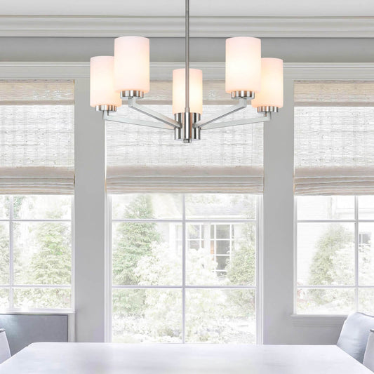 Modern 5-Light Brushed Nickel Chandelier with Glass for Dining Room XB-C1272-5-BN
