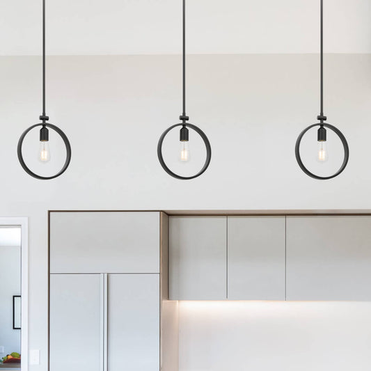 Adjustablel Black Metal Hoop Pendant Light with LED Bulb XB-P1269-MB-LED