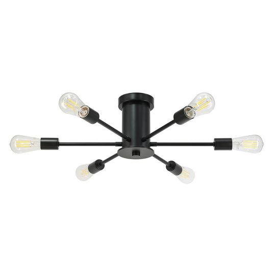 6-Light Semi Flush Mount Sputnik Ceiling Light Fixture, Matte Black with LED Bulbs XB-SF1241-6-MBK-LED