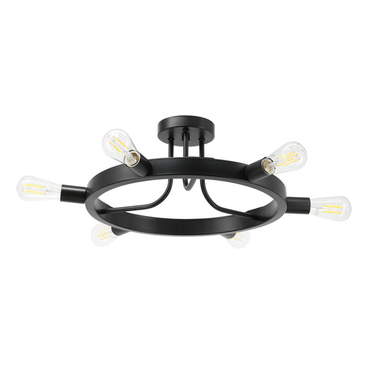 Semi Flush Mount Ceiling Light, 6-Light Ring Chandelier, Matte Black, Bulbs Included XB-SF1243-6-MBK-LED