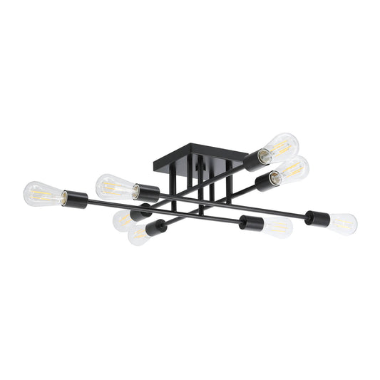 Sputnik Chandelier, 8-Light Semi Flush Mount Ceiling Light, Black with LED Bulbs XB-SF1242-8-MBK-LED
