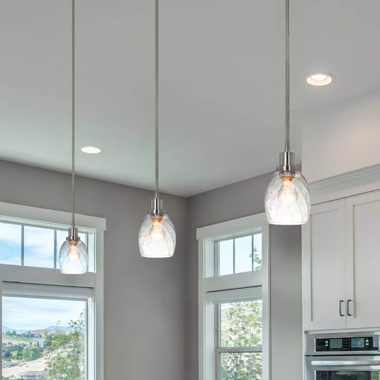 Adjustable Brushed Nickel Mini Pendant Light with Glass Shade for Kitchen XB-P1160-BN