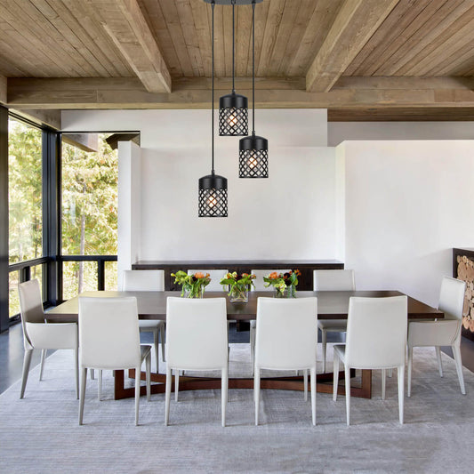 3-Light Adjustable Pendant Light with Black Metal Cage XB-P328-3-MB