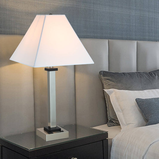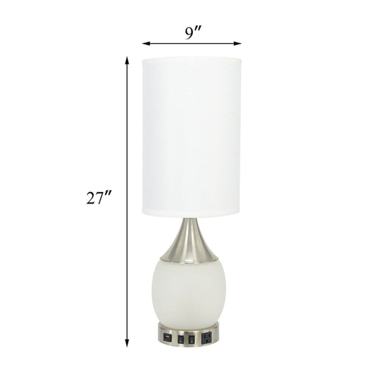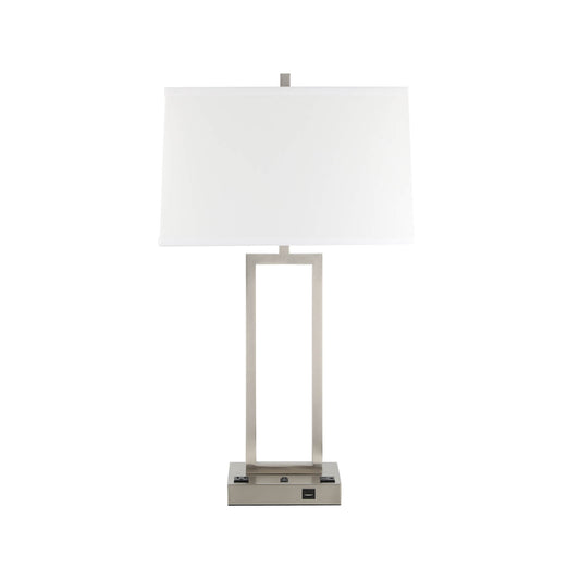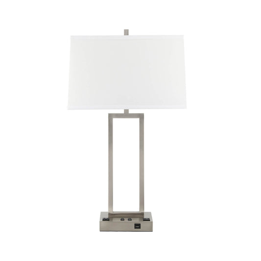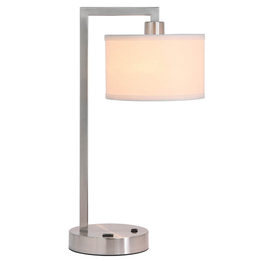 Table Lamp with USB Port, Brushed Nickel, White Fabric Shade, Desk Light for Bedroom XB-TL1231-BN