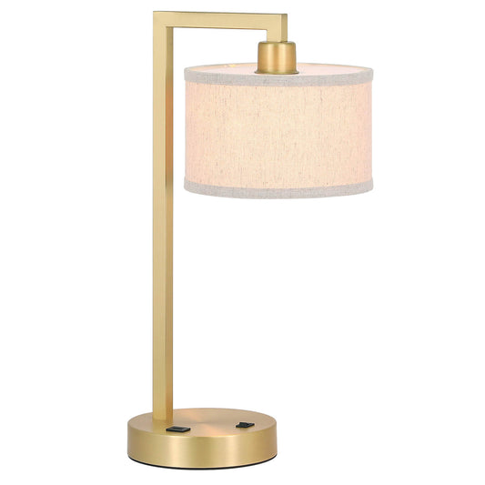 Modern Satin Brass Desk Lamp with USB & Fabric Shade XB-TL1231-SB