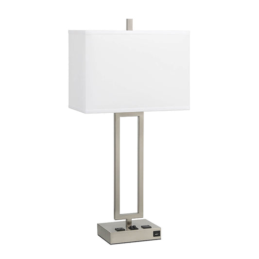 Modern Brushed Nickel Office Home Hotel Bedside Desk Table Lamp with Outlets and USB XB-TL322-BN