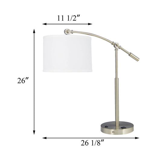 Modern Hotel Bedside Lamp Adjustable Arc Hotel USB Iron Table Lamp with Fabric Shade XB-TL133-BN
