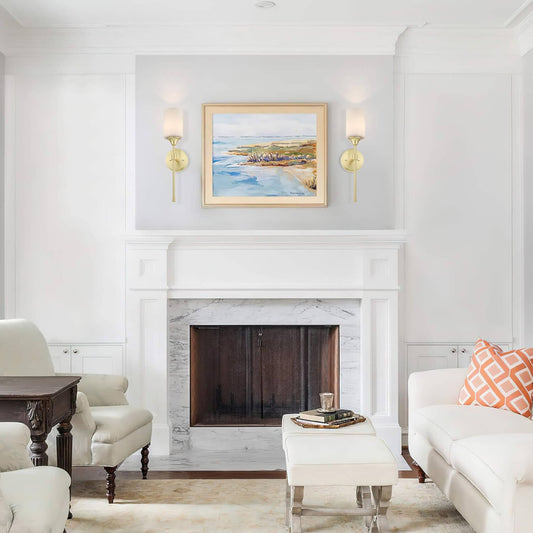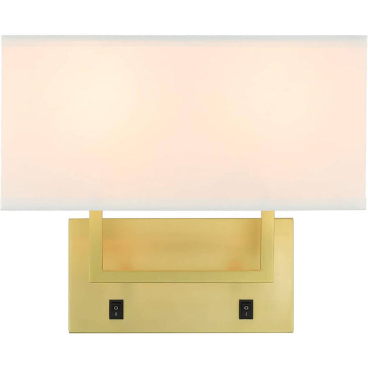 Wall Sconce with White Shade, Satin Brass, 2-Light, Bedroom Wall Lamp with On/Off Switch XB-W1230-SB