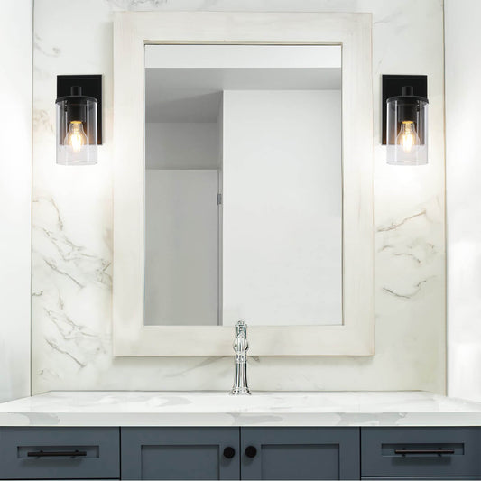 Classic 1-Light Black Vanity Sconce with Dual Glass Shades XB-W1276-1-MB