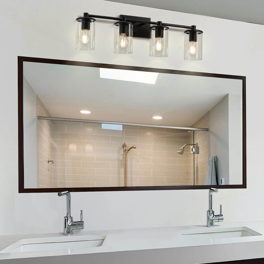 Modern Bathroom Vanity Light Fixture, 4-Light, Black with Clear Glass Shades XB-W1240-4-MB