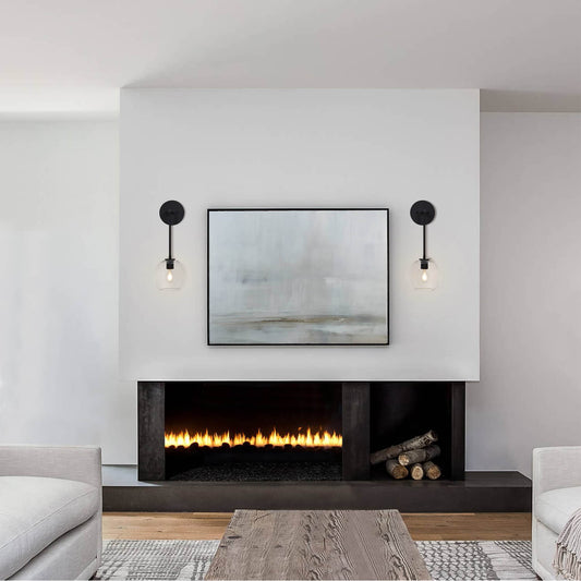 Set of 2 Black Wall Sconces with On/Off Switch, Hardwired or Plug-in XB-W1265-MB