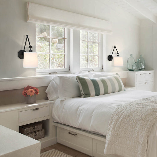 Wall Sconce Light Fixture, Matte Black Vanity Light with Fabric Shade, 1-Light XB-W1260-MB