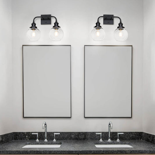 Modern Matte Black 2-Light Bathroom Vanity Fixture with Globe Glass Shades XB-W1275-2-MB