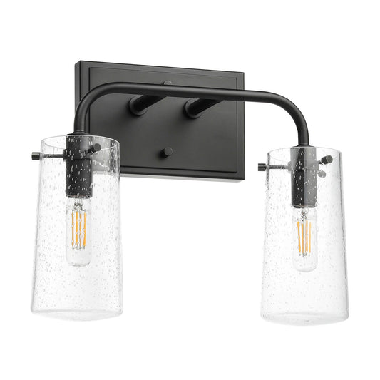 Modern 2-Light Black Vanity Light with Seeded Glass XB-W1283-2-MB