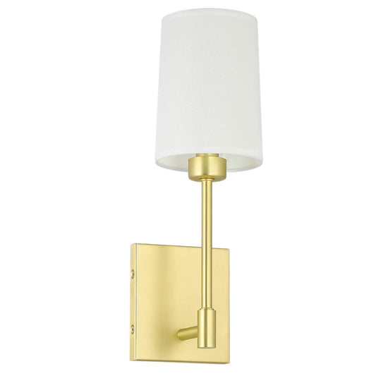 Modern Wall Sconce Light Fixture, Satin Brass Finish, White Fabric Shade, Single Light XB-W1215-1-SB