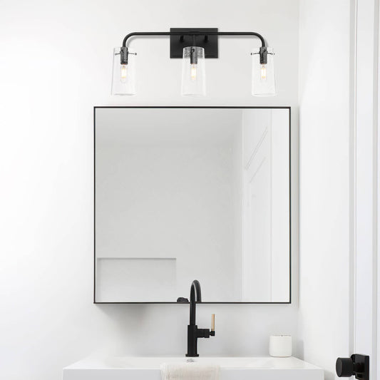 3-Light Black Industrial Vanity Light with Seeded Glass XB-W1283-3-MB