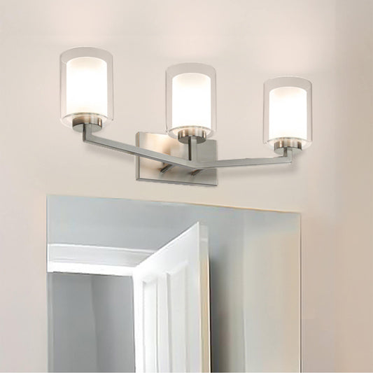 Brushed Nickel 3-Light Vanity Sconce with Dual Glass Shade XB-W1294-3-BN