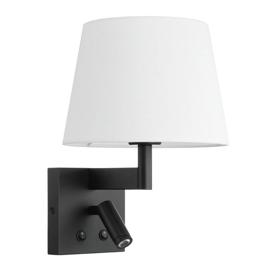 Hardwired Wall Sconce Reading Light with Linen Shade & Switch in Matte Black XB-W468-LED-MB
