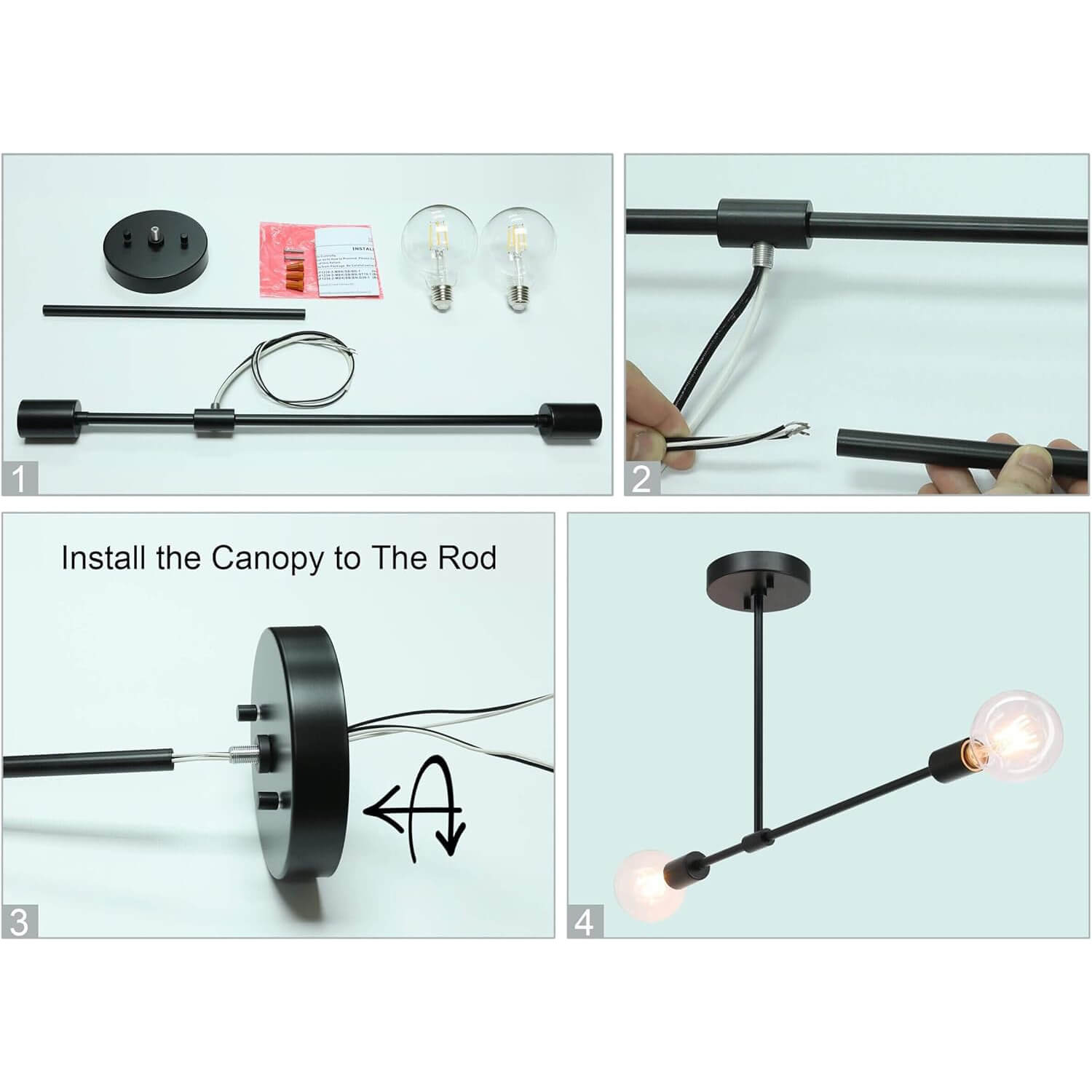 - EASY INSTALLATION: This black semi flush light fixtures is an ideal for low or mid-height ceilings. Come with all the mounting hardware for quick and simple installation.