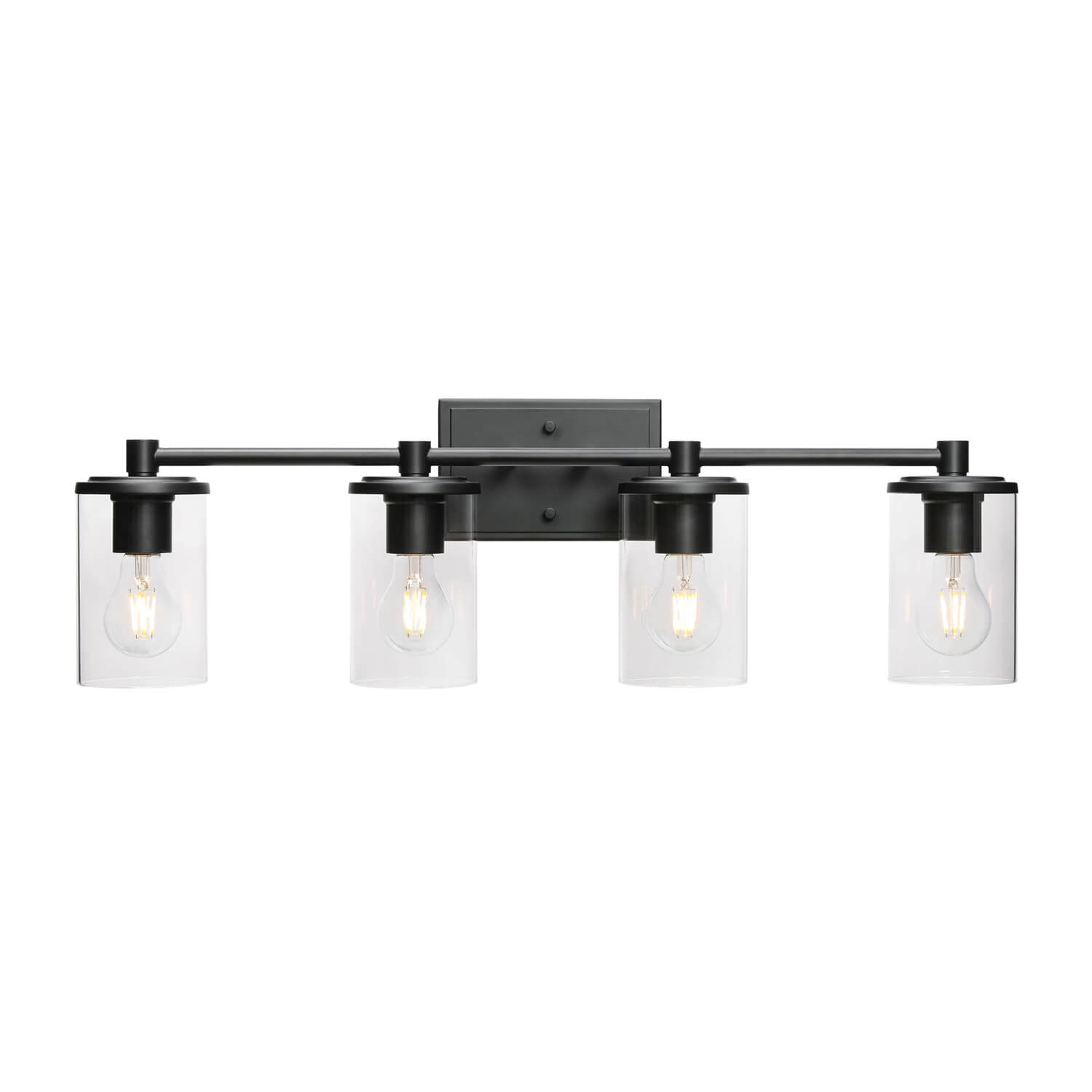 - FEATURE: Hardwired. 4 light bathroom vanity light features clear tubular glass shade in black finish; Black bathroom light fixtures are with simple design and easy to install of which can be mounted facing in an up or down direction.