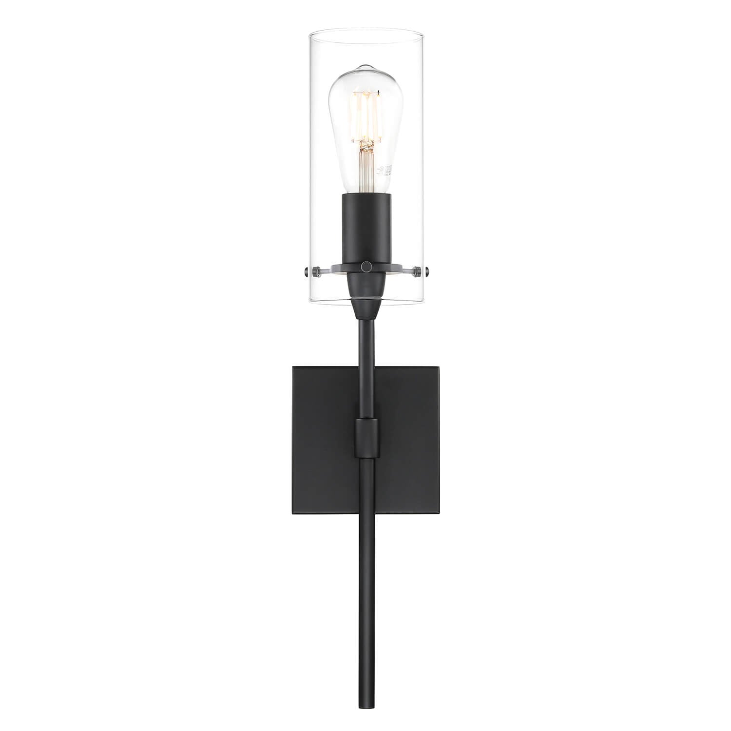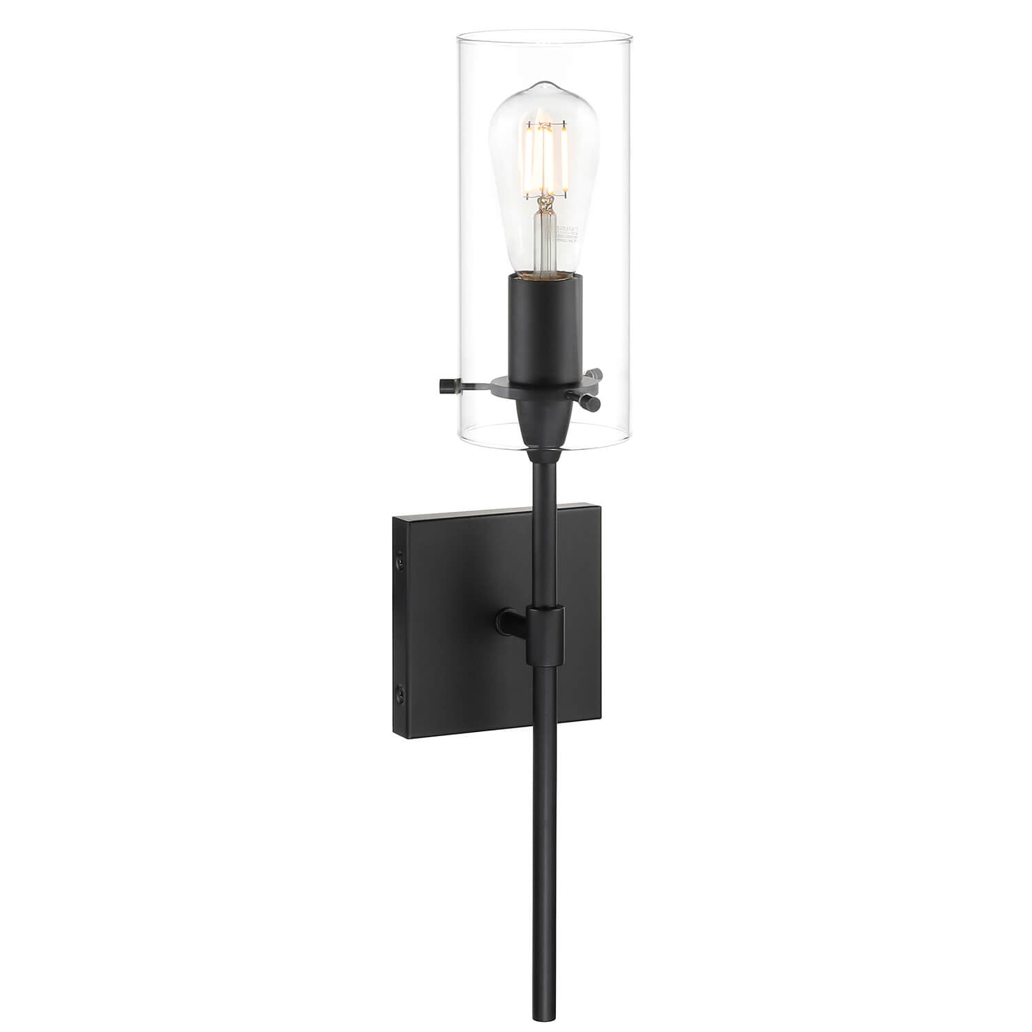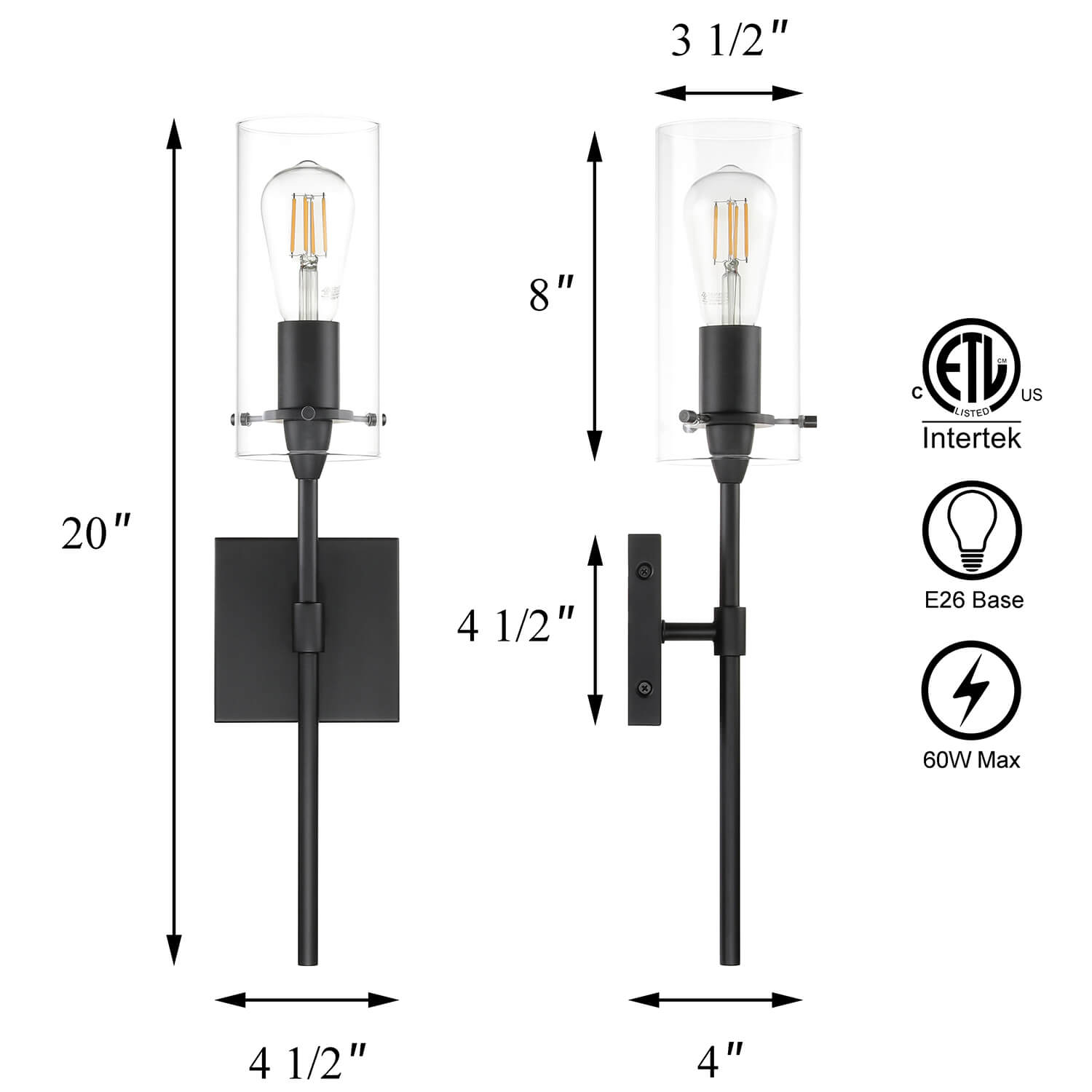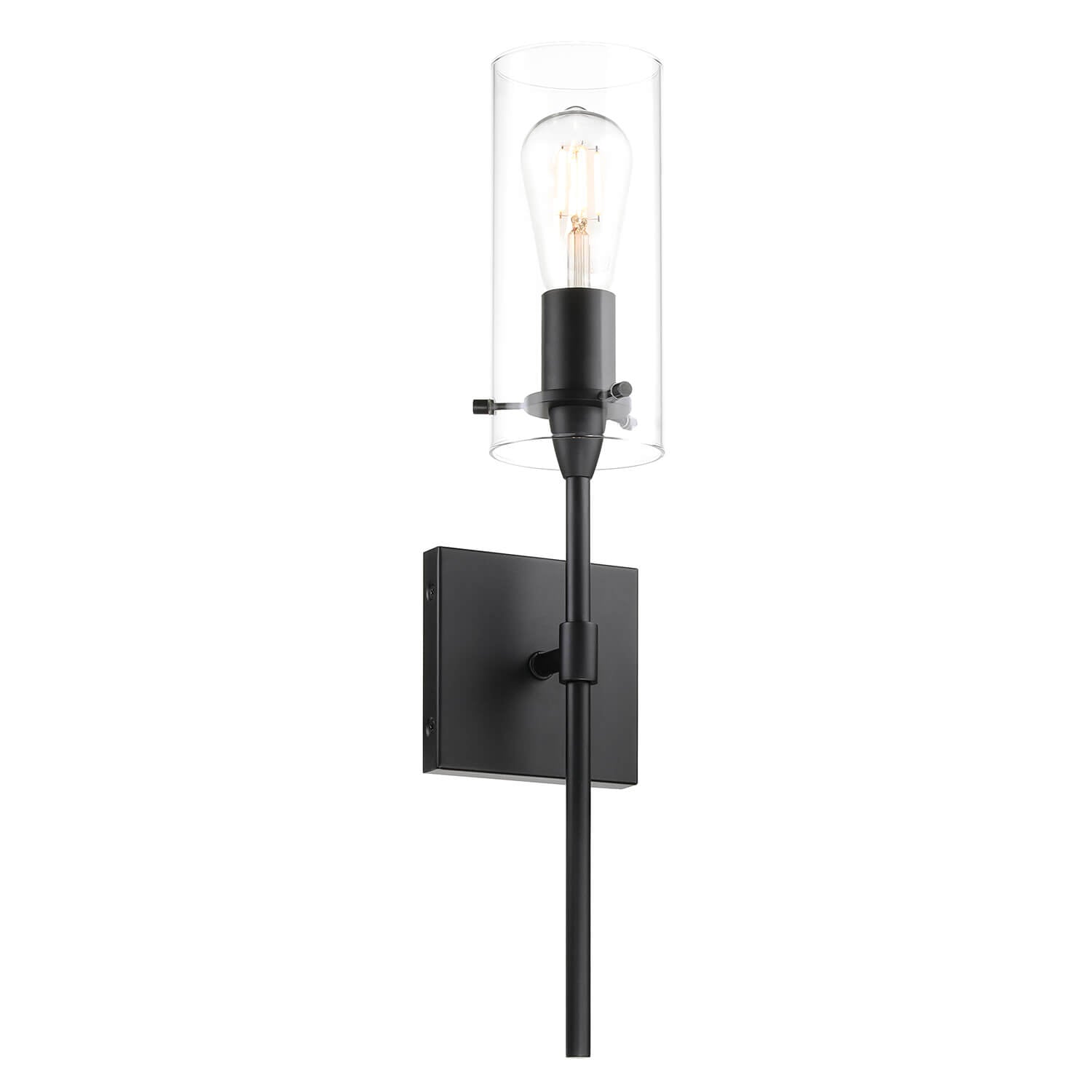 - MODERN DESIGN: Sconces wall lighting is made of matte black body and square backplate and clear tube glass that diffuses the light source to create a warm atmosphere. This bathroom sconces striking design will add a modern and more layered look to your space.