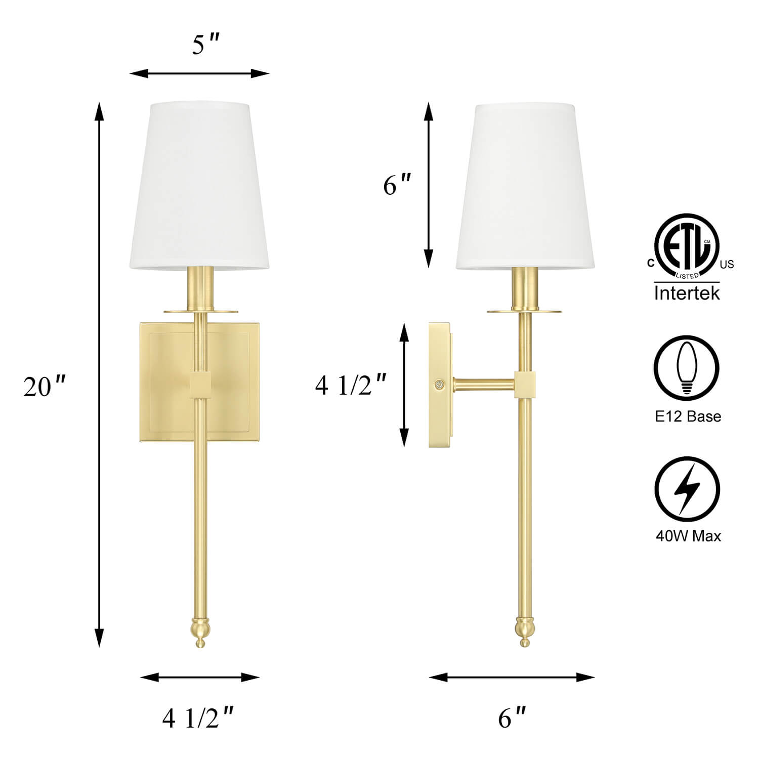 • E12 BASE SOCKET: This sconces wall lighting suggest to takes one maximum 40 watt E12 base bulbs (incandescent, CFL or LED compatible). Bulbs not included.