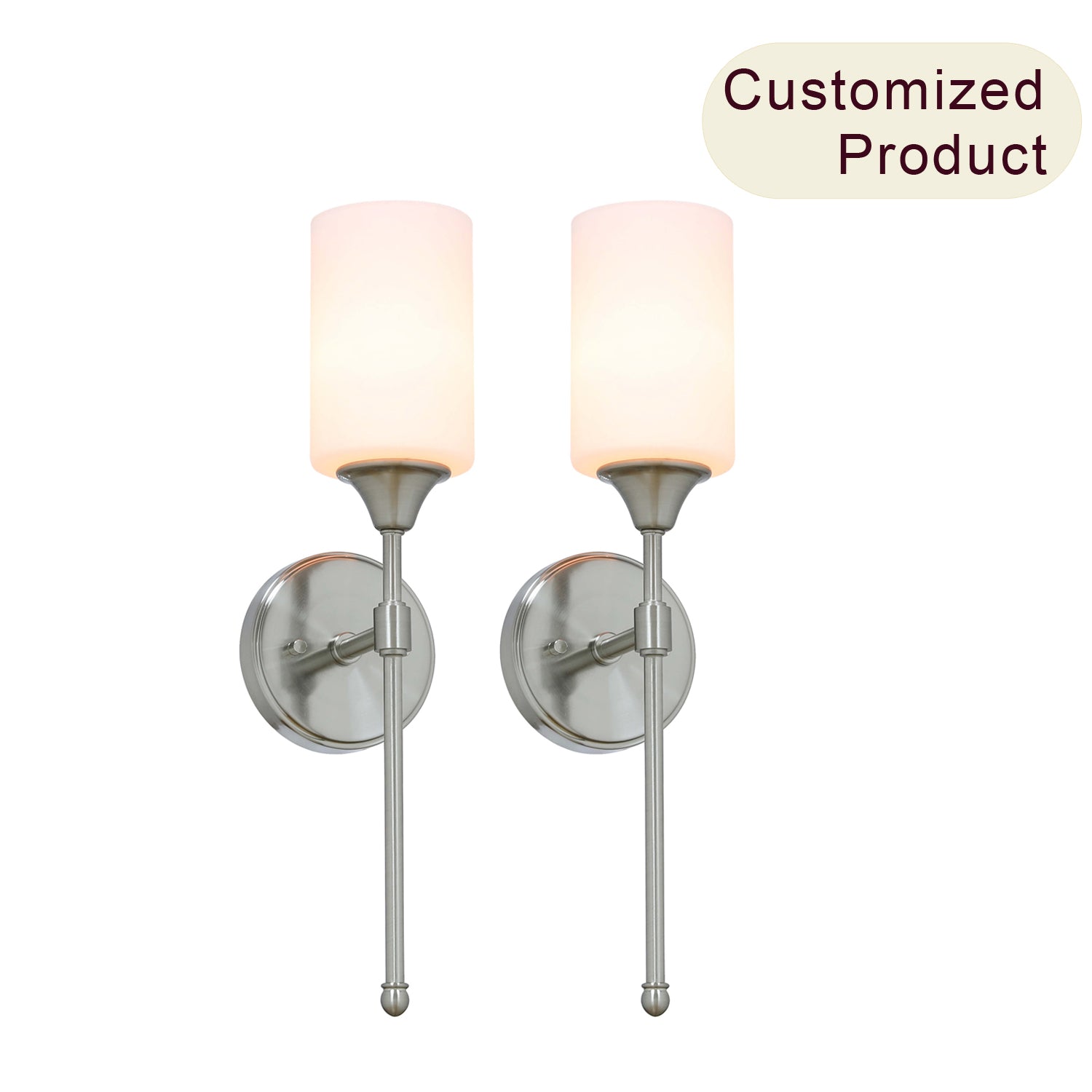 - FEATURE: Hardwired, brushed nickel wall sconce with cylinder glass shade; bathroom wall sconces set of two are with simple design and easy to install
