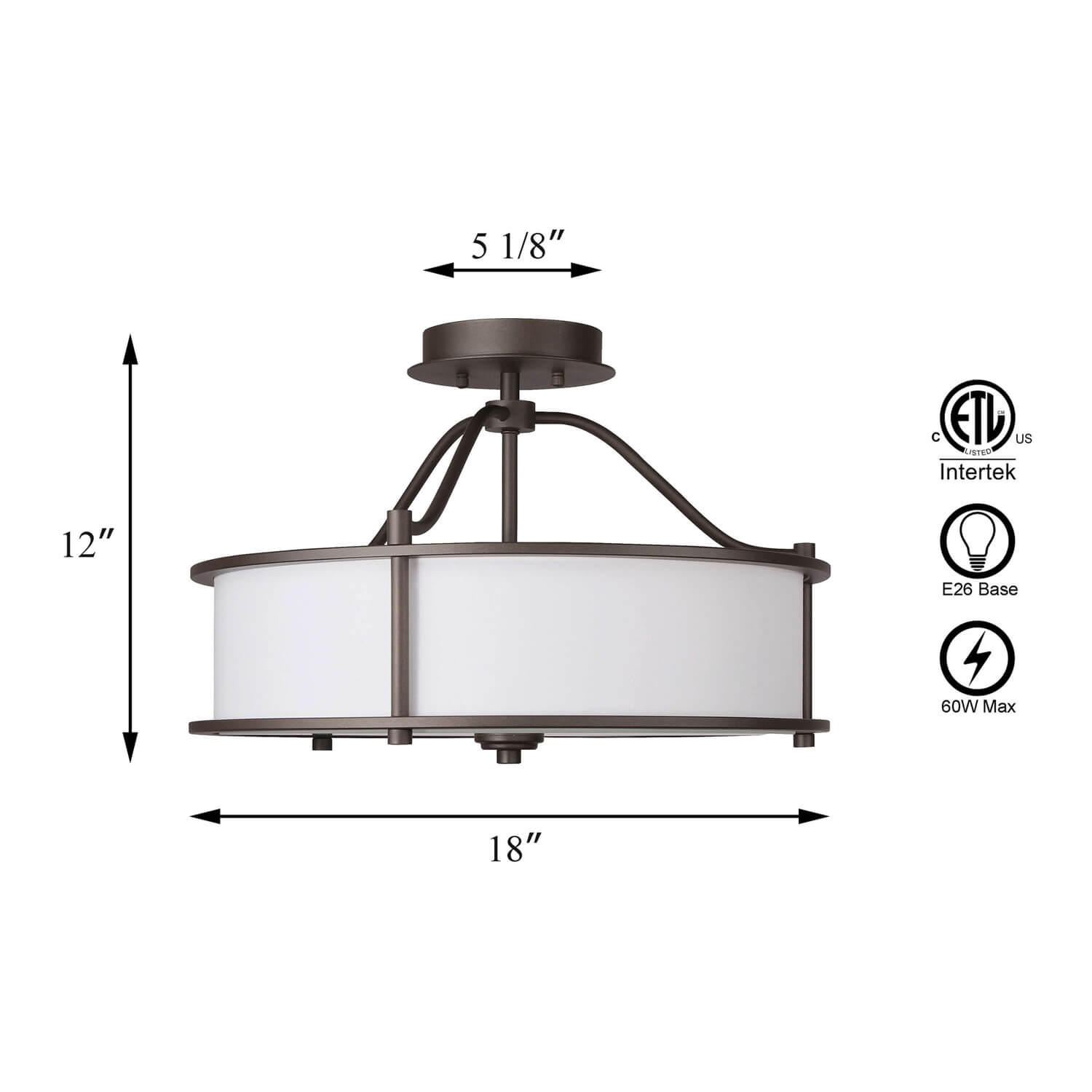 - FEATURE: Classic design drum shade semi flush mount ceiling light in dark bronze features a simple design with durable steel frame, drum fabric shade and glass diffuser that completes the comfortable and elegant look. This 3 light close to ceiling light is unique surrounding the sleek fabric shade provides a stylish, modern feel to elevate your home.