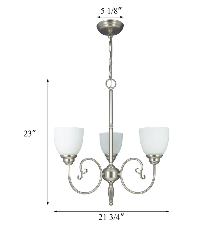Modern Hotel Vintage Glass Shade Brushed Nickel 3 Light Hanging Ceiling Light Fixture Large Chandelier Pendant Light XB-C721-3-SN