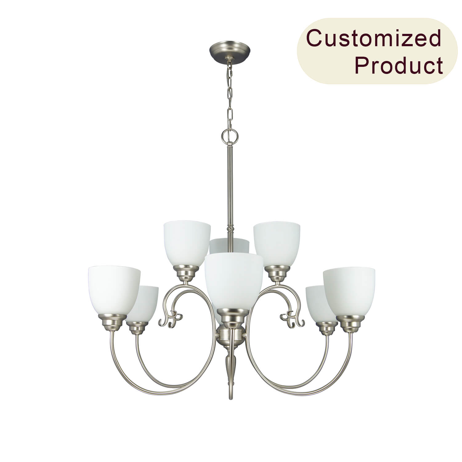 Modern Hotel Vintage Glass Shade Brushed Nickel 3 Light Hanging Ceiling Light Fixture Large Chandelier Pendant Light XB-C721-9-SN