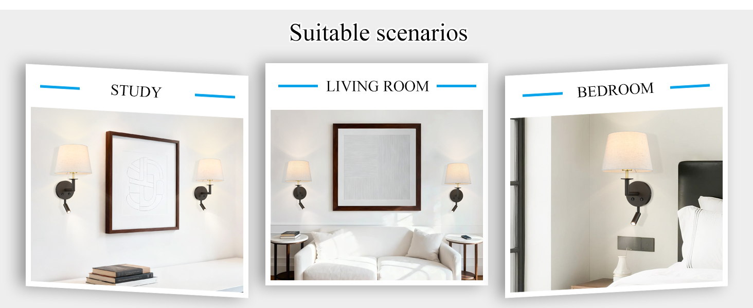Transform Your Space when install this wall sconce lamp Wall lamp with adjustable LED reading lamp and 2 On/Off rocker switch on backplate that is convenient for you to read, study or working.