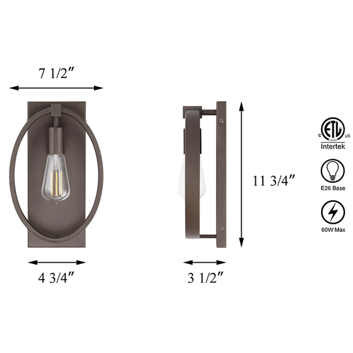 - E26 Medium BASE SOCKET: Bronze wall sconce is suggest to takes one maximum 60 watt Medium base bulbs (incandescent, CFL or LED compatible). Bulbs not included.