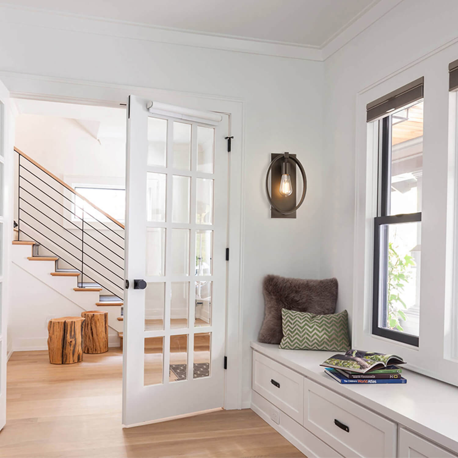 This 1 light wall light is in dark bronze finish with an oval metallic body and bare bulb design that showcases a vintage, industrial home décor. It is suitable for adding a unique note to your hallway, bedroom, kitchen, or living room, making it one of the best wall lights for versatile placement.
