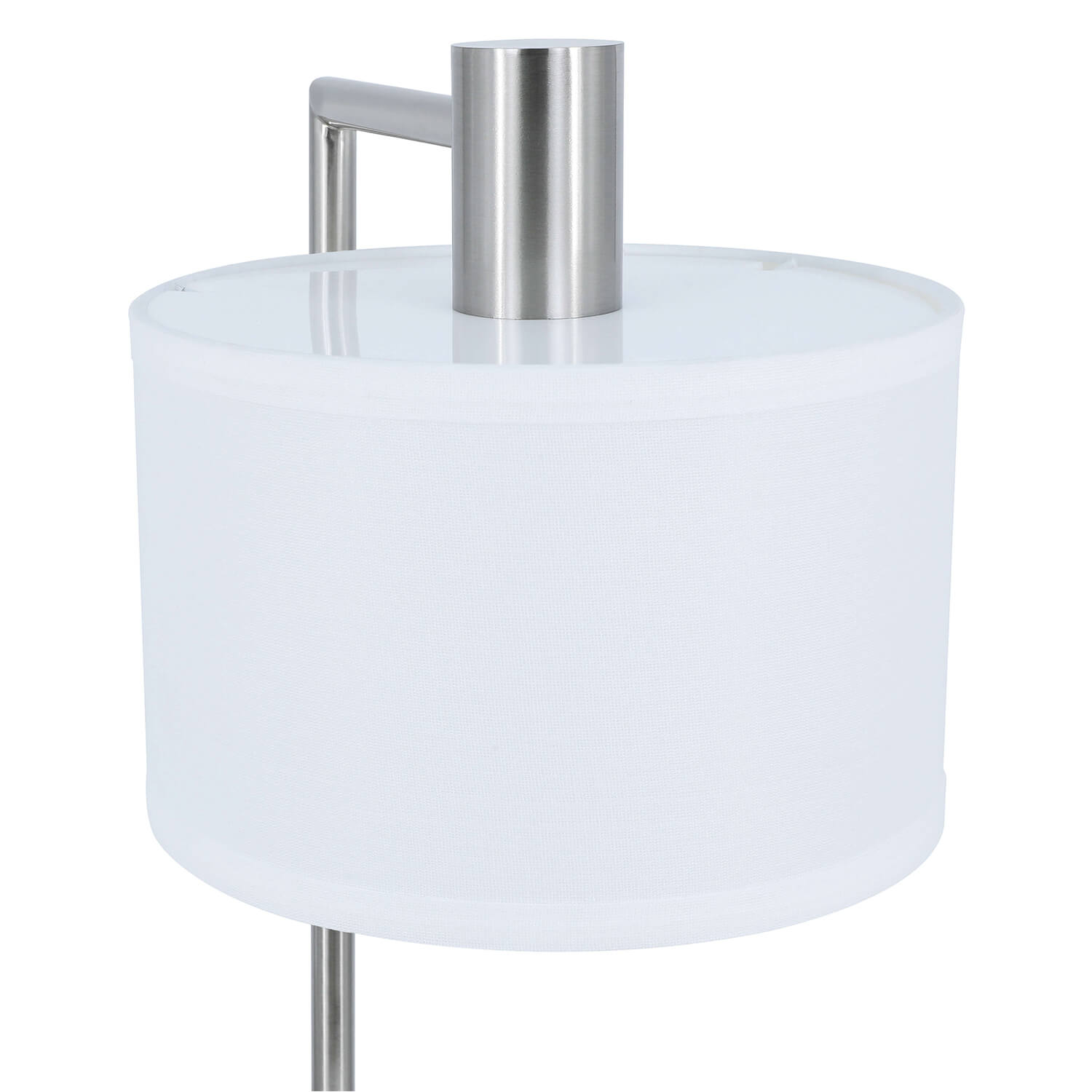 - MODERN DESIGN: Brushed nickel bedside Table Lamp is in Metal Consturction with round white fabric shade that looks amid contemporary decoration, and suitable for using in bedroom, living room, den, nursery, meditation room or office.